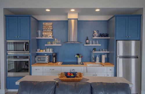 Blue view offers guests a modern lakeside cottage that has been thoughtfully appointed with your comfort in mind. Guests will sleep in one of the two private bedrooms in a queen bed with ample room. A galley style kitchen with full size appliances and cookware allow our guests the choice to stay in for meals. Blue view has a large deck with magnificent views for you to enjoy your morning cup of coffee while listening to the song birds. Spend the day fishing off the dock, or explore the lake in the kayaks provided. At night enjoy sitting by the firepit as you relax with a glass of wine from one of the nearby vineyards.