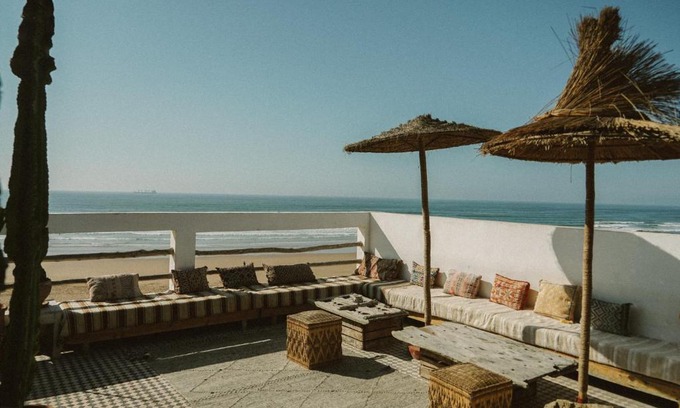 Blue Waves Surf House offers accommodations in Agadir, a few steps from Anza Beach and 2.9 miles from Agadir port. This beachfront property offers access to a balcony. The guest house provides sea views, a sun terrace, and free Wifi is available throughout the property. At the guest house, all units include a wardrobe. There's a seating and a dining area in all units. At the guest house, all units are fitted with bed linen and towels. Guests can eat at the on-site family-friendly restaurant, which is open for dinner, lunch, and brunch. Yoga is available at the property. A car rental service is available at the guest house. Marina Agadir is 4.4 miles from Blue Waves Surf House, while Agadir Oufella Ruins is 4.4 miles from the property. Agadir–Al Massira Airport is 17 miles away, and the property offers a paid airport shuttle service.