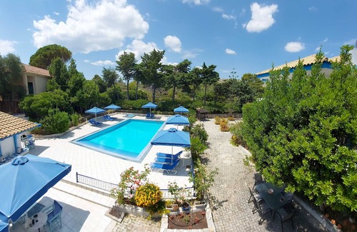 Enjoy your own private holiday home in Keramies. This 55 m² single-storey house includes 2 bedrooms (2 twin beds + 1 full bed), a modern bathroom with shower and hairdryer, and a fully equipped kitchen with oven, refrigerator, electric kettle, and kitchenware. A dining area and outdoor furniture let you enjoy meals indoors or outside. The house features air conditioning, soundproofing, flat-screen TV with cable channels, and a private entrance. Relax on the balcony, terrace, or patio and take in the mountain, garden, and pool views.