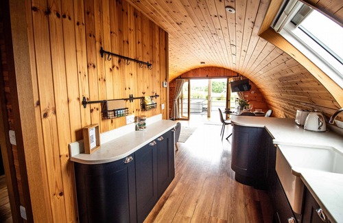 Perfect for a couples retreat in Wales or family getaway, Bluebell Pod has a modern open-plan kitchen and living space. Complete with dining table for meal times, a Smart TV, two sofas and views out to your private garden. The kitchen has been perfectly designed with lots of storage solutions to keep your space free from clutter. You have all the mod-cons including a dishwasher, microwave, oven and hob, surrounded by gorgeous marble work surfaces.