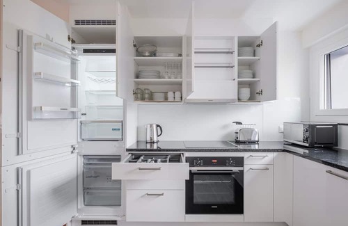 As with any Blueground apartment, you’ll find a thoughtfully designed space complete with beautiful furniture and a fully equipped kitchen in this two bedroom property. And, thanks to our superior quality mattresses, luxury linens, and towels, you can relax knowing you’ll always feel comfortably at home. When you’re ready for some fun, you can take in the Zurich vibes or bring the entertainment to you with the premium wireless speaker or smart TV. This apartment also offers in-apartment laundry.