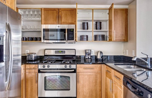 This furnished home is located in Pentagon City in Arlington County, across the Potomac River from Washington DC. Amazon has chosen the area for its new headquarters. The neighborhood is the perfect mix of convenience and culture, with lots to do in the area plus a direct city connection via the Blue and Yellow lines of the DC Metro. Pentagon City has a well-attended weekly farmer’s market, as well as outdoor movie screenings in the summer. You can easily shop for groceries at supermarkets or Costco, and there are plenty of restaurants if you would rather not cook. Pentagon City is home to the Fashion Centre mall, with both national brand retailers and independent shops and restaurants.