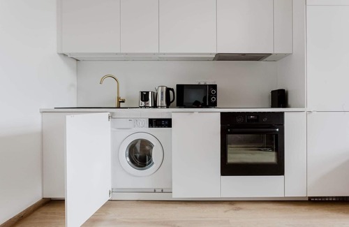 Thoughtfully designed with bespoke finishes, modern furnishings, and a fully equipped kitchen, you’ll enjoy that “I’m home” feeling with this apartment. Whether you’re lounging in your stylish living room streaming the latest and greatest entertainment on the smart TV or premium wireless speaker, or getting some well-earned rest on the superior quality mattress with luxury linens, you’ll fall in love with everything this Vršovice apartment has to offer.