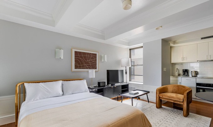 As with any Blueground apartment, you’ll find a thoughtfully designed space complete with beautiful furniture and a fully equipped kitchen in this studio property. And, thanks to our superior quality mattresses, luxury linens, and towels, you can relax knowing you’ll always feel comfortably at home. When you’re ready for some fun, you can take in the New York vibes or bring the entertainment to you with the premium wireless speaker or smart TV.