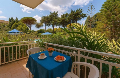 Back at Blue White Apartments, unwind in the lush gardens, take a refreshing dip in the seasonal outdoor pool, or enjoy the serene ambiance of the terrace. With complimentary Wi-Fi and private parking, every detail has been designed for your convenience and comfort.