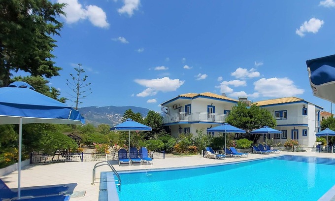 Just 3km from Klimatsias Beach, this fully equipped studio for 2 offers access to an on-site pool, perfect for a memorable Kefalonia getaway.