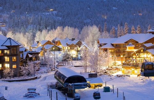 100 meters to the ski in/out Dave Murray ski run. Ski down to Creekside Gondola.