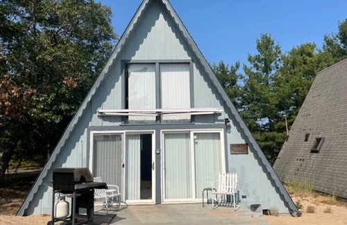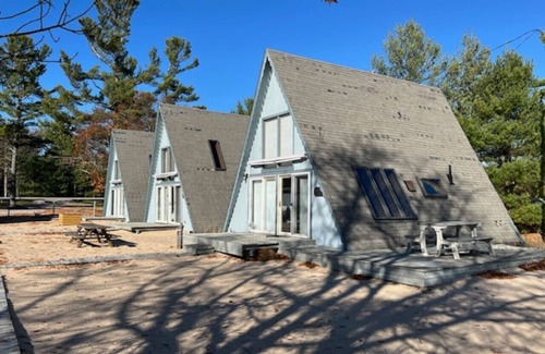 Imagine a charming A-frame rental nestled right on the sandy shores of Lake Huron. This cozy retreat offers two bedrooms and one bathroom, perfect for a small family or rent all three for a group of friends looking for a lakeside escape.