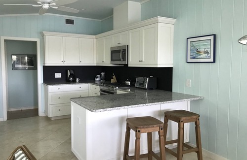Each of the two spacious bedrooms offers a king sized bed and its own en suite private full bathroom (one new in 2017) well stocked with white hotel quality towels and new linens, blankets, and pillows and beach towels. House sleeps four in beds. Your visitors can access the third full bathroom directly from the living room.