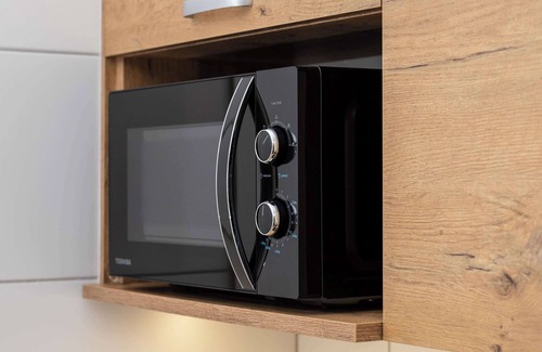 Refrigerator with freezer function, electric kettle, induction hob, microwave, dishwasher, glasses, set of pots, cutlery, frying pan