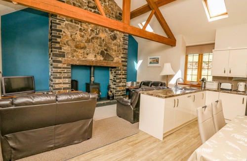 The living areas in this property consist of an open-plan living space with kitchen, dining area and sitting area with woodburning stove. Appliances include an electric oven and hob, microwave, fridge/freezer, washer/dryer, dishwasher, and a Smart TV. The bedrooms consist of a twin with en-suite shower, and a ground-floor family room with en-suite bathroom. Outside, there is a front porch with seating, along with parking for two cars. Within 2.8 miles, you will find the nearest shop and pub. Please note, this is a pet-free, non-smoking property. Wi-Fi, fuel, power, bed linen, and towels are all included in the rent. Enjoy a memorable stay in North Wales at Bodnant. Note: Low, slanted ceilings in upstairs twin bedroom, please take care when moving throughout. Note: Tesla EV charging available.