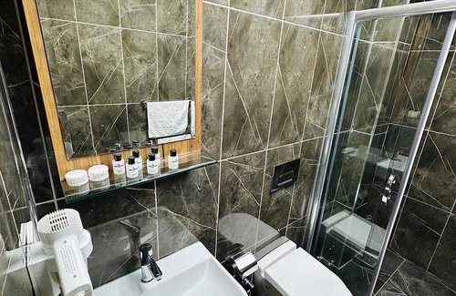 Escape to this delightful hotel suites in picturesque Istanbul. This cozy suite features 1 full bed, a bathroom with a shower and hair dryer, and amenities like WiFi and AC. Our place will help you feel at home while you're traveling in Istanbul.
