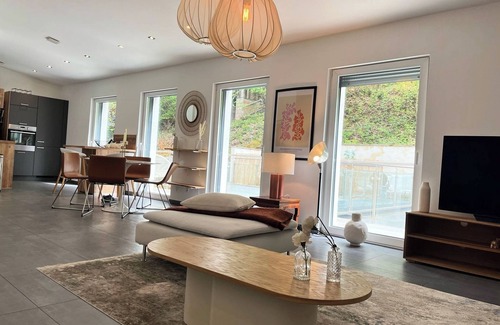 Discover the beauty of Luxembourg from this stunning 80sm, 2 bedroom penthouse, featuring floor-to-ceiling windows and beautiful decor.