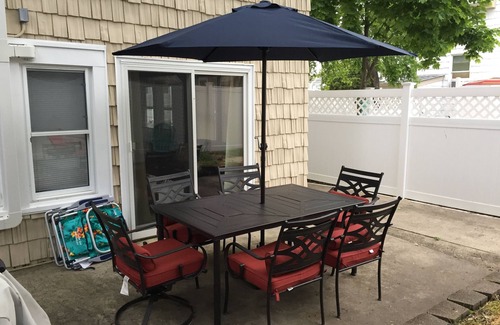 This charming lower apartment is situated in the rear of 24 Bond Avenue. The property comes with six beach badges and features a private patio complete with a grill and an outdoor shower. Accommodating up to four guests, it has a king bed in the primary bedroom and a bunk bed in the second bedroom. Additionally, the family room offers a pull-out sleeper sofa, allowing for a total sleep capacity of six.
