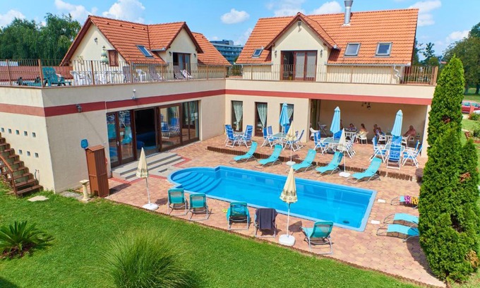 Located in Zalakaros, 20 miles from Thermal Lake Hévíz, Boni Családi Wellness Hotel provides accommodations with an outdoor swimming pool, private parking, a terrace and a restaurant. Providing a bar, the property is located within 1.7 miles of Zalakaros Lookout Tower. Each room has a patio with garden views and free WiFi. All guest rooms in the hotel are equipped with a flat-screen TV with satellite channels. All rooms come with a private bathroom with a hairdryer, while selected rooms here will provide you with a balcony and others also have pool views. Boni Családi Wellness Hotel offers a buffet or continental breakfast. Guests can relax in the spa and wellness center, including an indoor pool, a sauna and a hot tub, or in the garden equipped with a playground. You can play pool and table tennis at this 3-star hotel, and bike rental is available. Buffalo Reserve is 6 miles from the accommodation, while Church of the Holy Spirit Hévíz is 21 miles away.