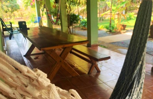The house has a green area of 2000sqm with many trees, a large balcony with 2 hammocks to rest and enjoy the whole green area of the house. It has 2 bedrooms, both with TV, ceiling fan and bathroom. In the kitchen, stove, refrigerator and all necessary utensils. The house is located 1000m from the main square, near the police, markets, bakeries, bars and restaurants. Also within easy reach of changing rooms.