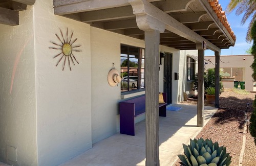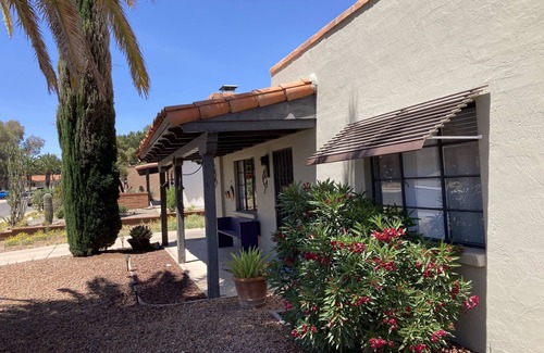 Quaint 2 bed 2 bath Adobe home with a nice private backyard in a quiet, friendly and safe neighborhood. Ready for you to come relax and “Chill in Dry Heat” at our Mariposa house! Cozy up to the fireplace. Take a stroll, ride a bike ( vintage cruiser bikes available). Enjoy an afternoon nap under the beautiful and warm Arizona sky. Take in the Mountain views. Ample outdoor seating available. Close to shopping, thrift stores, churches, restaurants, golf course, and Green Valley Recreation Centers. Only 20 minutes to Tucson and the wonderful quaint town of TUBAC!