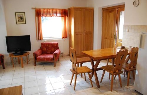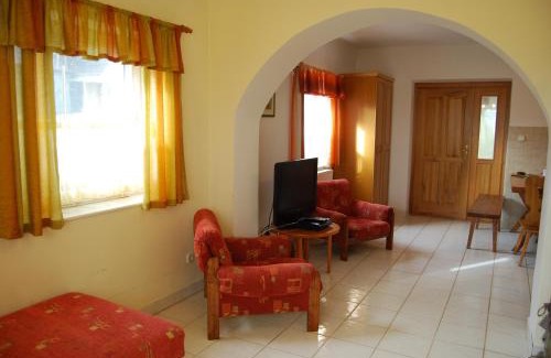 Boróka Apartmanházak - Fagyöngy House in Velem provides accommodations with a garden and a terrace. With garden views, this accommodation offers a patio. There's free private parking, and the property provides paid airport shuttle service. The units come with parquet floors and feature a fully equipped kitchen with a microwave, a dining area, a flat-screen TV with satellite channels, and a private bathroom with bath and a hair dryer. A toaster, a fridge, and stovetop are also provided, as well as a coffee machine and a kettle. At the guest house, every unit includes bed linen and towels. A mini-market is available at the guest house. A bicycle rental service is available at the guest house, while skiing and cycling can be enjoyed nearby. Burg Lockenhaus is 14 miles from Boróka Apartmanházak - Fagyöngy House, while Schlaining Castle is 16 miles away.