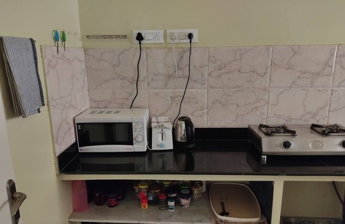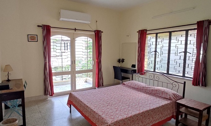 Bright, air-cooled double room with desk chair, full size mirror, dresser and cupboard, ensuite washroom modern fittings and 24X7 hot and cold water. We have named the room after the famous Bengali children's book Podi Pishir Bormi Baksho. A Burmese box is a term for a box full of treasures. This room is custom-made book covers from three beloved children's books.