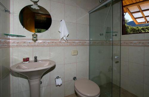 Bosque dos Beija-Flores is a hidden retreat in São Thomé das Letras region which offers a range of leisure and wellness activities. Surrounded by preserved nature and boasting fireplace, it uses organic self grown vegetables and fruits, as well as honey from their own apiary in their delicious dishes. The charming rooms at Bosque dos Beija-Flores Pousada e Spa features a satellite TV, a mini-bar and a small desk with a chair. Linens and towels are provided, as well a reading lamp and a private bathroom. Varginha Airport is 50 mi away. São Tomé das Letras city center and its bus station are 5 mi from guest house. Parking and Wi-Fi are free. Guests can relax on the lounge with a fireplace, or have a meal made in the wood burning stove with fresh and organic ingredients. The buffet breakfast offers a variety of regional items. Guests can bathe in the mineral water spring and make use of the library or the video-library on site. Additional activities include Japanese-style baths, massage service and sauna, as well as birdwatching, and guided hiking.