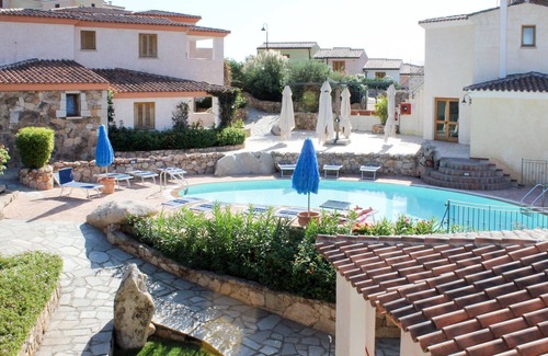 Small residence "Bouganvillage". 18 apartments in the residence. 2 km from the centre of Budoni, 17 km from the centre of San Teodoro, 40 km from the centre of Olbia, in the district Tanaunella, on a slope, 3 km from the sea, road to cross. For shared use: property with meadow, swimming pool kidney-shaped (10 x 4 m, seasonal availability: 17.Apr. - 22.Oct.). Garden furniture, barbecue, children's playground (slide, swing). In the complex: reception, bar, washing machine (for shared use), bicycles available. Central parking spaces. Supermarket 1.5 km, bus stop 120 m, ferry "Olbia" 42 km, sandy beach "Porto Ainu e Sant'Anna" 2.5 km. On request: airport transfer to the holiday accommodation. The photo is just an example. The majority of the apartments is located around the pool, whereas some apartments are located outside of the complex in close proximity.