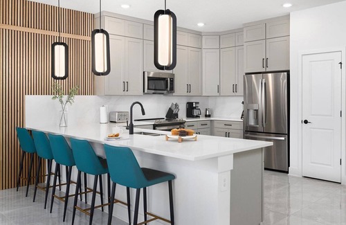When the weather is right (basically always), pop open the patio door to your private outdoor oasis, featuring a crystal blue pool, comfy loungers, a patio table and chairs, and a grill. Shift the vibe from chilled to fired up with some friendly competition at the ping pong table, putting green, and poolside basketball hoop!