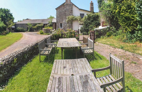 Bathroom: Bath, Toilet. Oil central heating (£50 per week, £35 per short break October-April), electricity, bed linen and superfast broadband included. Initial fuel for wood burners included. Travel cot and highchair. Welcome pack. External games room with table tennis. Large, enclosed garden with patio, garden furniture and gas barbecue. Orchard garden to rear. 220-acres of pasture and woodland (shared with owner). Hot tub (private, £100 per week). Hydrotherapy spa in courtyard. Ample parking. No smoking. Please note: Sorry, no hen or stag parties. . This lovely, south-facing detached 17th-century farmhouse is set in 1-acre of sheltered gardens, situated on the outskirts of the pretty rural hamlet of Littleham. Ideal for a family get-together. Good country walking and only 3 miles from the coastal footpath and Tarka Trail cycle route. Guests are welcome to use the miles of farm walks shown on the map. Village pub with good food and beer garden, 5 minutes’ walk. Within the grounds is the popular double storey games room with table tennis, pedal tractor, go-kart, toys etc.