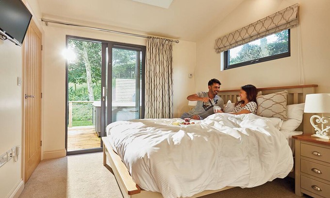 Boutique and spacious luxury lodge, perfect for a romantic escape. This lodge boasts one master double with en suite bathroom with bath and separate shower. Light and spacious open-plan living/dining area with shaker style kitchen and doors leading to a patio with outdoor hot tub.