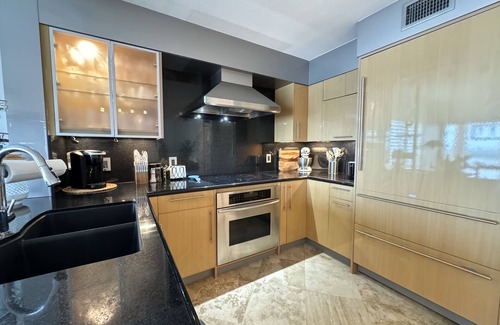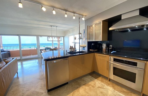 Inside, the home boasts high-quality finishes and a gourmet kitchen, allowing you to prepare delicious meals while enjoying the stunning beach views. With two spacious bedrooms, including a master with a king bed and a guest bedroom with two queen beds, all furnished with new superior-quality mattresses, and new pillows a restful night's sleep is ensured for every guest. Each bedroom features a flat-screen television, and the two deluxe bathrooms with natural stone finishes create a spa-like atmosphere.