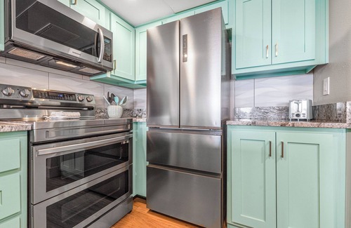 This studio has a private balcony that overlooks the tropically landscaped pool area where you can sit and watch a beautiful sunset and the Corpus Christi lights come to life at night. With 550 square feet this studio has a king sized bed and a twin size sleeper and will accommodate 3 people. With a fully equipped kitchen and a full bath you should have everything you need to make your stay comfortable. With the beach just steps outside the front door, you can enjoy the best of both worlds.