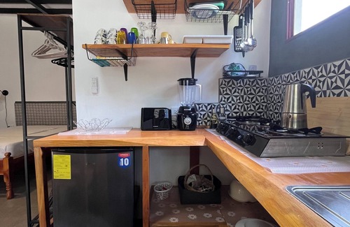 Discover a unique retreat on Ometepe Island in our cozy bungalow with breathtaking volcano views. Enjoy a private terrace, fully equipped kitchen, and peaceful surroundings. Perfect for sunset lovers, nature enthusiasts, and anyone seeking comfort, privacy, and an unforgettable experience in the heart of paradise. Enjoy the lovely setting of this romantic spot in nature.