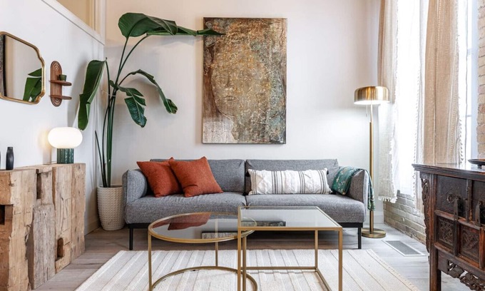 Welcome to The Sandalwood- a serene, design-forward, King-bed retreat at Bradshaw Lofts in the heart of Stratford. Steps from the Avon Theatre, Stratford park system, and Tom Patterson Theatre, the loft features curated global decor, soft natural textures, a full kitchen, luxe linens, and warm heritage bones, this loft blends comfort with refined elegance. Walk to theatres, cafes, and galleries. Ideal for romantic getaways, solo escapes, or creative stays in a space where arts & culture coexist.