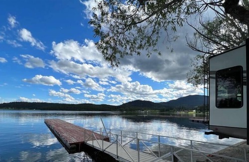 This brand new, spacious, 2 bedroom 1 bathroom 5th wheel is nestled right at the shore of beautiful Waitts Lake. Every nook and cranny was thoughtfully designed and maximized in this gorgeous RV allowing up to 10 people to sleep comfortably. With the wide open floor plan your family can experience the breathtaking 180 degree views of the water from almost any vantage. Enjoy some relaxation outdoors in our sitting area complete with a fire pit, picnic table, chairs, and retractable awning!