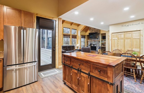 Looking for a place to unwind? You found it! Simple Gifts II provides a beautiful space for soothing your soul while recharging your psyche. Nestled among the trees in Canaan Valley’s Black Bear Woods development, Simple Gifts II is newly constructed and features a unique pedestal design. The main level features an open floorplan featuring an extremely well-equipped kitchen, large dining table, woodburning fireplace, and big screen TV. At the top of the steps kids will be delighted to find a creative “cubby” that provides an excellent location for imaginary playtime. This vacation home offers four bedrooms along with a queen size Murphy bed in the downstairs den, which is actually the house’s pedestal. Simple Gifts II provides access to countless paths for walkers, bikers, and nature lovers. This Canaan Valley rental even offers air-conditioning! It is a short drive to Blackwater Falls, Canaan Resort and Timberline Mountain. Plan your perfect vacation at Simple Gifts II. 4-wheel drive vehicles with snow tires or chains will be necessary for winter visits.