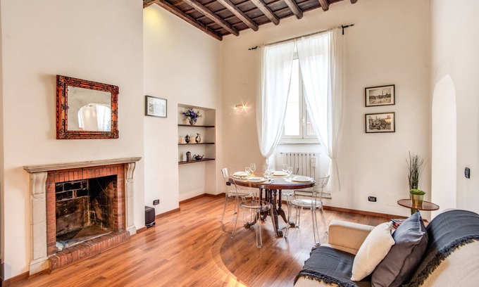 Situated in a 8th century storic building, in the heart of Rome - Trastevere, comfortable, spacious, bright, refined and fully equipped with all comforts needed for an unforgettable stay in the Eternal City. Furnished with care and precious materials, airconditioning, fast WiFi. Capacity up to 6 Guests. The main attractions of the city are within walking distance, such as Pantheon, Colosseum, Imperial Forum, Trevi Fountain, Spanish Steps, Piazza Navona.