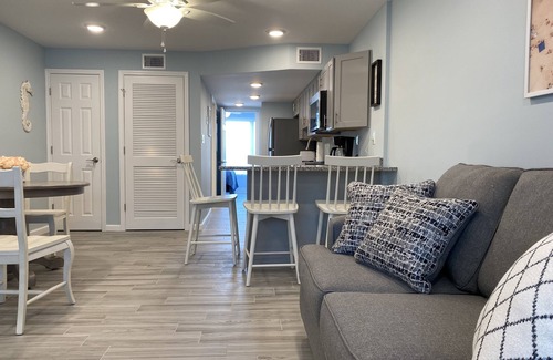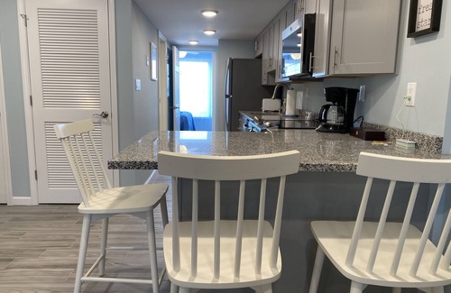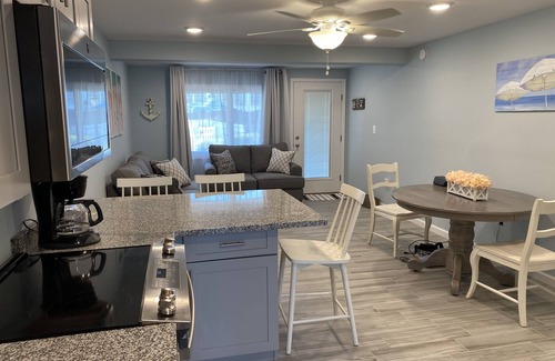Brand new condo on the beach with heated pool. This condo was just completely renovated in June 2020. Located on first floor which is most desirable since there are no elevators. 4 beach badges for private beach included. Granite counter tops, stainless steel appliances, central air conditioning, washer and dryer, 2 flat screen TVs, has sunset views from bedroom and is located on the beach with pool right outside the front door. Queen bed In bedroom and queen bed In pullout couch in family room. Walk across the street to the bay or walk to eat breakfast and lunch at the farmers market. Bring (or rent) bikes and venture into Lavalette for more food, shopping, mini golf, basketball and tennis and more. Brand new park across the street (on the bay) playground for kids, fishing, grabbing, corn hole or just take a nice morning walk or jog on the bay.