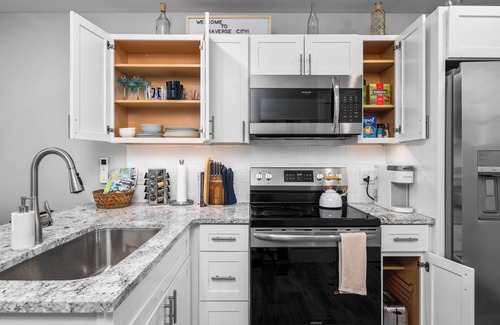 Escape to Traverse City's hidden gem - a cozy one-bedroom, two-bed (pullout) retreat nestled on the cusp of downtown. This newly built townhouse offers a perfect blend of modern comfort and convenience. Situated just a short 3 minute drive to Old Mission Peninsula or a leisurely stroll to East Bay Beach. Immerse yourself in the sandy shores, indulge in water activities, or simply unwind. Discover a serene oasis at the tranquil end of 8th Street while still relishing the vibrant city life.