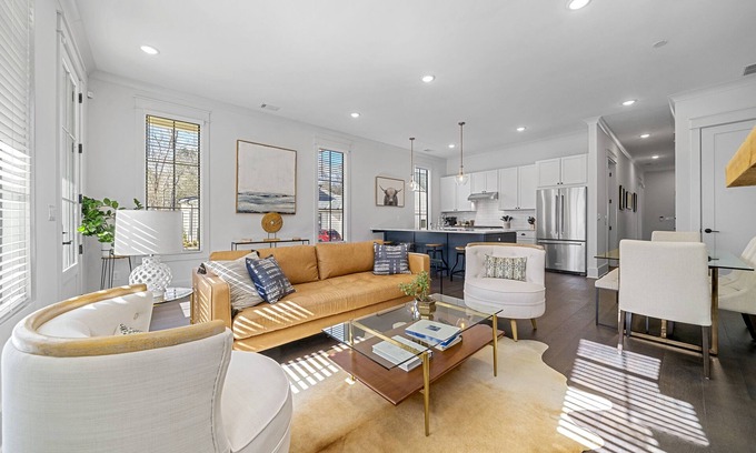 Brand new townhome in a gated community with all new finishes and furnishings. This 3 bed 3.5 bath home is perfect for the single business traveler all the way up to a group of six. Featuring three private bedrooms each with their own bathroom, cable, internet, big screen tvs, dedicated work space, car charger, access to the clubhouse and gym, game center, coffee bar and so much more. This home is also handicap friendly with an elevator available, large doorways, and zero step curbs.