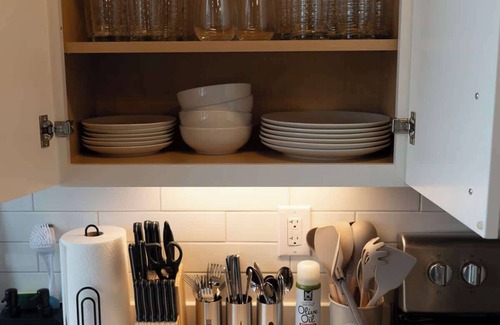 Welcome to our cozy ground-floor 1-bedroom apartment in historic Uptown Martinsville, Virginia. The space boasts a full kitchen equipped with everything you need to prepare meals during your stay. Relax in the living room with fast fiber internet and streaming TV, or unwind in the bedroom featuring a comfy queen memory foam bed and an additional streaming TV. Enjoy the convenience of free on-site parking, making it easy to explore the charming shops and eateries just steps away. This apartment offers the perfect blend of modern amenities and historic charm for a comfortable and convenient stay.