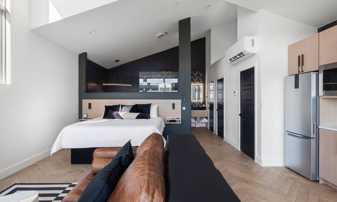 Escape the daily hustle and bask in serene luxury high above Branson in the Ozarks. Behold breathtaking Table Rock Lake vistas from your Nordic-inspired, minimalist retreat. Recharge in opulent bedding, luxuriate in the deep, 2-person soaker tub, and reconnect with your partner. Conclude your day with a sunset-wine ritual, gazing upon the endless horizon while the last few rays of sunlight dance on Table Lake – a true indulgence in life's finest moments—25+ adults-only accommodation.