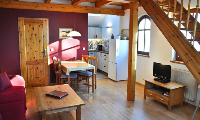 Providing a garden, Braunsberger Höfe - Urlaub auf dem Bauernhof provides accommodations in Braunsberg. Housed in a building dating from 1900, this apartment offers free Wifi and free private parking. Landestheater Mecklenburg is 30 miles from the apartment and Kulturhaus Stadtgarten is 11 miles away. Offering a balcony and garden views, the apartment includes 1 bedroom, a living room, satellite flat-screen TV, an equipped kitchenette, and 1 bathroom with a shower. Towels and bed linen are featured in the apartment. The property has an outdoor dining area. Mirow Castle is 24 miles from the apartment, while Schloss Tornow is 26 miles away. Berlin Brandenburg Willy Brandt Airport is 76 miles from the property.