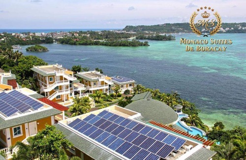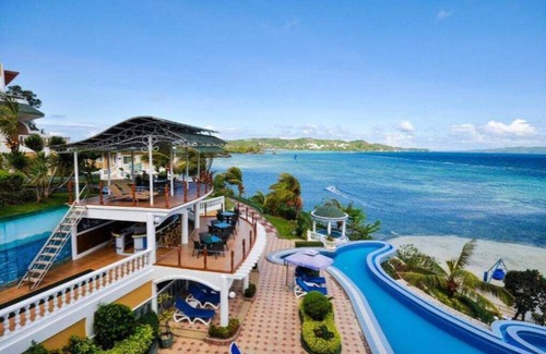 A luxurious retreat with views of Bulabog Beach and Mt Luho, Monaco Suites, stretches over acres of landscaped tropical gardens. It boasts a private dolphin-shaped outdoor infinity pool.