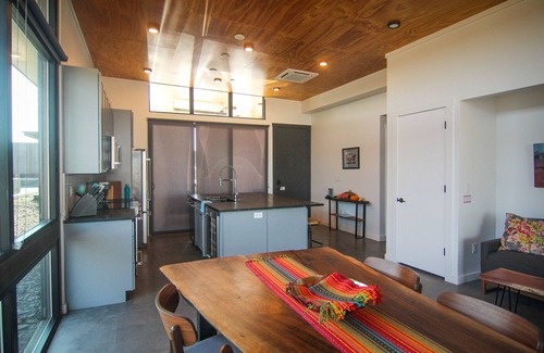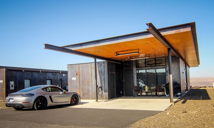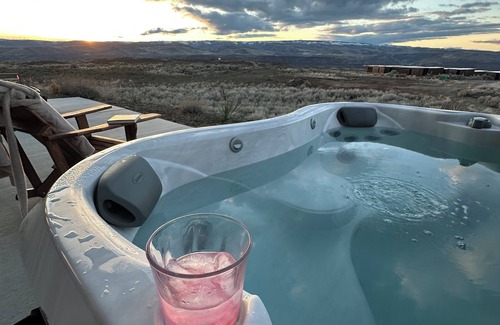 Enjoy this Tom Kundig designed modern Northwest Desert bungalow with sweeping Columbia Gorge Views for concerts, wine tasting, hiking, and fun with friends and family. Beat the crowds and walk to the Gorge Amphitheater, Cave B Winery, and SageCliffe resort. The interior is spacious, bright and open with floor to ceiling windows. The kitchen is fully stocked for gourmet cooking. The home is a marvelous entertaining space featuring a patio with majestic views, hot tub, BBQ, and a gas firepit with lounging area. Enjoy original artwork throughout the home by Tacoma and Seattle area artists.