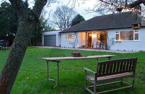 Our bungalow in a truly idyllic location with the most amazing view over the Dedham Vale. Modestly updated. it oozes character with 2 cozy fires, luxe ensuite, Fired Earth shower room all on the same level as it is a bungalow. The west facing covered verandah is wonderful to sit and watch the sun go down over the valley - maybe light the fire-pit and sit outside by in the chilly evenings. There is unlimited free WiFi for guests. The 3 beds will be made but please bring your own towels. More guests could be put up on inflatable mattresses if you'd like to bring them for the attic/loft space - please enquire about small additional charge.