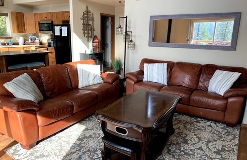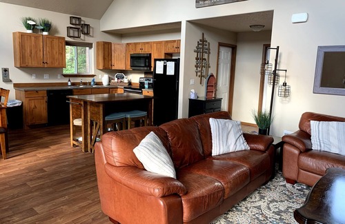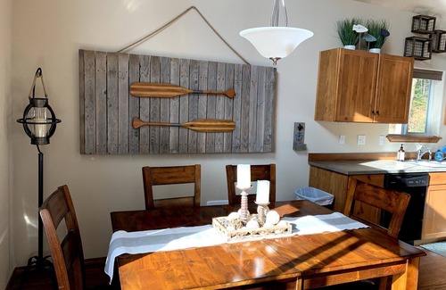 Our charming lakefront home sits on nearly an acre of natural splendor with 60 feet of beautiful, private, sandy beach complete with a private dock, wood-burning stove, and all the cozy comforts of a luxurious mountain/lake retreat! This home is the perfect getaway for every occasion in every season! The house sits further up the hill allowing easy year-round access, and incredible views, It is the perfect Lake Escape for a work, romantic retreat, girl’s weekend, fishing trip, family reunion, holiday gathering, or simply time to relax and breathe! With our high-speed Starlink internet, you can even get some work done if you must. The home comfortably sleeps 8. With a King size bed in the 1st bedroom, a Queen bed in the 2nd bedroom, 2 twin hide-a-bed chairs, and one queen hide-a-bed couch in the loft, there are plenty of sleeping options! The main floor of the house has a welcoming open concept floor plan with incredible views. The loft provides fun and games for all ages and additional space for kids or adults to spread out, play or relax. The Lake Escape is well-appointed and artfully furnished with everything you need to enjoy your stay. Enjoy 60 feet of private beach, dock, 2 paddle boards, 2 kayaks, canoe, beach toys, fire pit, dishwasher, washer, dryer, ample supply of linens and towels, a fully stocked kitchen, 4 TVs (family room, loft, both bedrooms), Blu-ray DVD player, Wii gaming system, satellite TV, games, movies, children’s toys and more! The property is located on Hayden Lake, 16 miles North of Coeur d’Alene and just 10 miles from Hayden Lake city center, where countless restaurants and activities await. The Lake Escape is less than 30 minutes from local attractions such as Silverwood theme park, Triple Play family fun, and the beautiful Coeur d’Alene Resort. Less than an hour and a half in any direction will take you to Schweitzer Mountain Resort, Mt Spokane Ski Park, Silver Mountain Resort, and numerous golf courses. But of course, you never need to leave home to enjoy breathtaking views, kayaking, paddle boarding, swimming, boating, bonfires, soaking up the sun, wiggling your toes in the sand, and more! The lake provides excellent fishing for kokanee, bass, pike, crappie, and trout. Enjoy the serenity of our home in the off-season on the lake and the reduced prices that go along with it! Book early and come make memories at the Lake Escape!<
