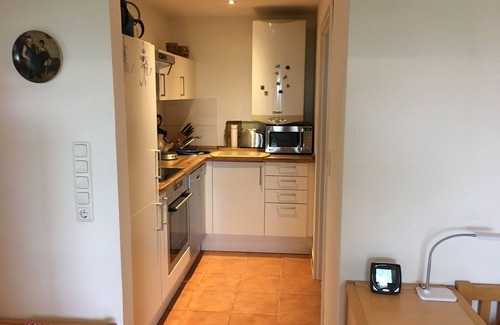 As you settle into this 1-bedroom, 1-bathroom rental, you'll find a living room and a BBQ grill. Prepare a home-cooked meal in the kitchen, complete with an oven, a stovetop, and a refrigerator, as well as a coffee maker, an electric kettle, and a microwave. And because there's a washer and dryer, you can go a bit lighter on your packing.