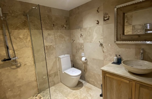 Brewer's Cottage is also fitted with a modern wet room, finished to an exceptionally high standard. Enjoy a luxury shower and the warmth and the travertine tiles heated by the underfloor heating. The bathroom is also fitted with a solid oak sink unit with granite top and bowl and heated towel rail to keep your fluffy white towels toasty.
