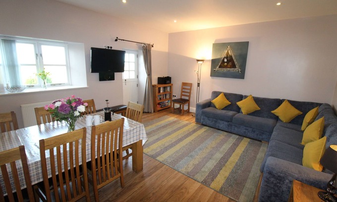 Briarhill House is a superb family home with a spacious open plan design, perfect for special gatherings or family get togethers. Graded 4* Gold by VisitEngland Briarhill House has plenty of room for up to 8 guests. The light and airy ground floor bedroom is ideal for those who no longer like the stairs and there are two further bedrooms and bathrooms upstairs. Briarhill House has an impressive open plan lounge/dining/kitchen space where guests can enjoy relaxing and dining together. There are great views over the neighbouring fields and the peaceful surroundings make Briarhill House the perfect place for guests to relax and explore the surrounding area.