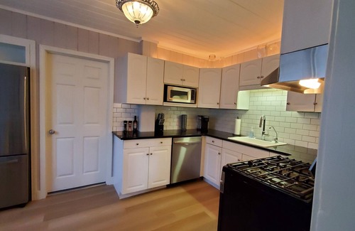 Enjoy and relax at the Historic 1870 EACO Mill, Brick & Timber Building that houses a single private suite. A newly acquired property that has gone through complete renovations. The large two bedroom 1200 sf suite is built inside the historic EACO warehouse. It is very private setting, on three acres of property. Settled on the east bank of Loon Lake. Walking/bike paths around the lakes and to nearby Parks. Walking distance to most quaint shopping and entertainment venues in town.