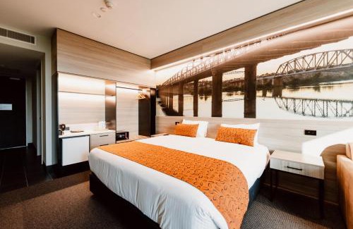 Located in Murray Bridge, 7.4 miles from Riverglen Marina, Bridgeport Hotel provides accommodations with an outdoor swimming pool, free private parking, a fitness center and a terrace. With free WiFi, this 4-star hotel offers room service and a 24-hour front desk. Certain rooms at the property include a balcony with a city view. The hotel will provide guests with air-conditioned rooms offering a desk, an electric tea pot, a fridge, a safety deposit box, a flat-screen TV and a private bathroom with a shower. Guest rooms have a closet. A continental, Full English/Irish or American breakfast is available at the property. At Bridgeport Hotel you'll find a restaurant serving American, Mediterranean and Pizza cuisine. Vegetarian, vegan and gluten-free options can also be requested. Monarto Zoo is 8.9 miles from the accommodation. Adelaide Airport is 50 miles away.